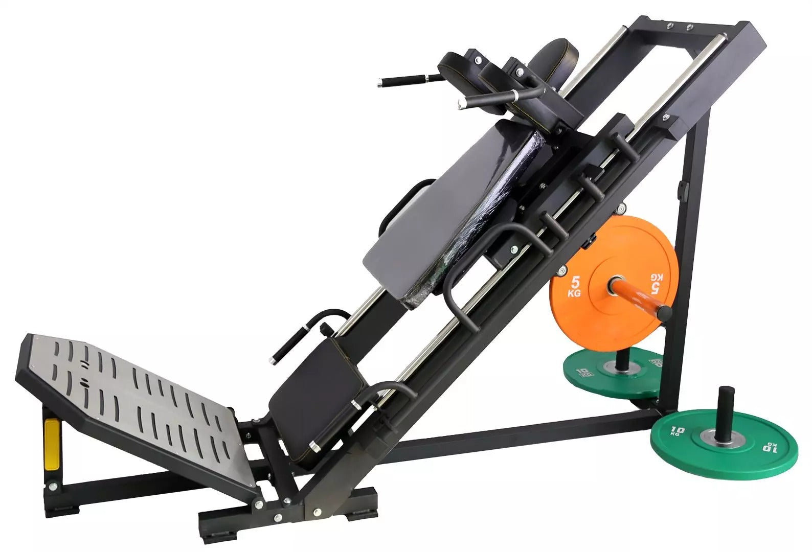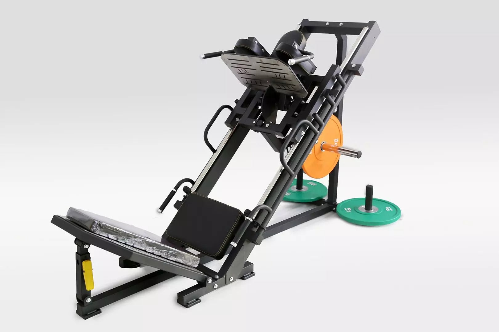 Monipuolinen, turvallinen ja tehokas ratkaisu jalkalihasten kehittämiseen – yhdistä jalkaprässi ja hack-kyykky yhdessä vankassa paketissa. Täydellinen valinta sinulle, joka haluat maksimoida tilan ja treenihyödyn.