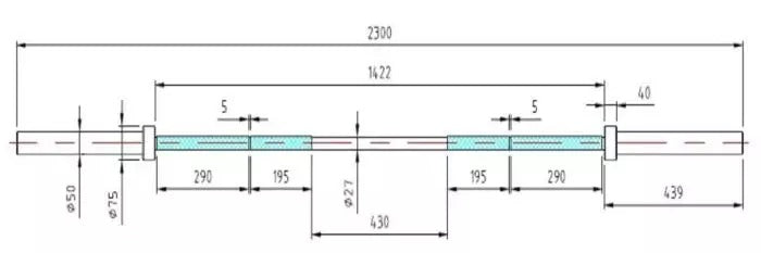 Tämä tanko on 230 cm pitkä ja siinä on 142,2 cm kahva-alue, joka tarjoaa optimaalisen otteen. Tangon maksimikuormitus on 907 kg, ja sen PSI-arvo on 205 000. Tangossa on karkeasti karhennettu pinta parhaan mahdollisen otteen varmistamiseksi.