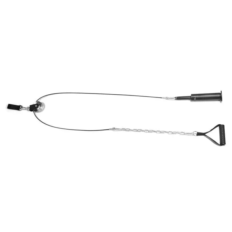 Vahva teräsvaijeri, ketju ja karabiinihaka tekevät järjestelmästä kestävän ja turvallisen. Mukana toimitettava TPE-materiaalinen vetokahva tarjoaa tukevan ja mukavan otteen myös hikisin käsin.