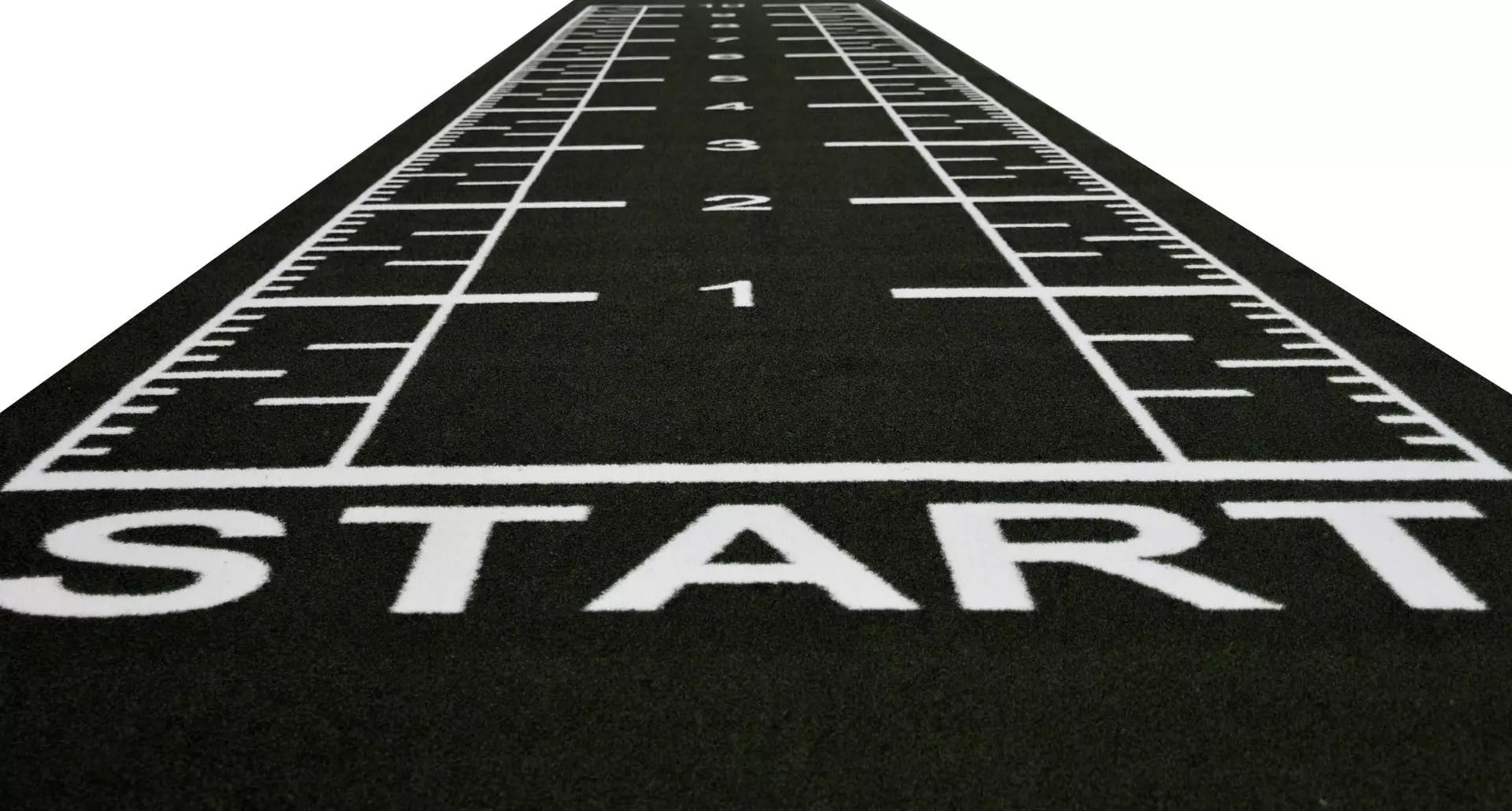 Tämä mustapohjainen keinonurmi valkoisin numeroin on suunniteltu kovaan käyttöön. Se sisältää selkeät numerot 1–10, jotka on merkitty jokaiselle metrille, sekä puolimetrin välein ohuemmat viivamerkinnät. Maton alussa on merkitty START-alue, joten se sopii erinomaisesti vetoharjoituksiin, sprintteihin, kelkkatreeneihin tai toiminnallisiin kuntopiireihin.