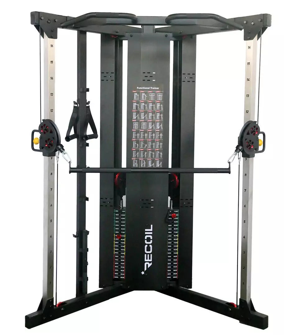 Recoilin kompakti ristikkäistalja on täydellinen ratkaisu sinulle, joka haluat suorittaa laajan valikoiman kaapeliharjoituksia ilman, että laite valtaa koko salin. Pienestä koostaan huolimatta kyseessä on täysiverinen painopakkalaite jossa on kaksi 100 kg painopakkaa ja useita fiksuja yksityiskohtia, jotka tekevät harjoittelusta sujuvaa ja monipuolista.