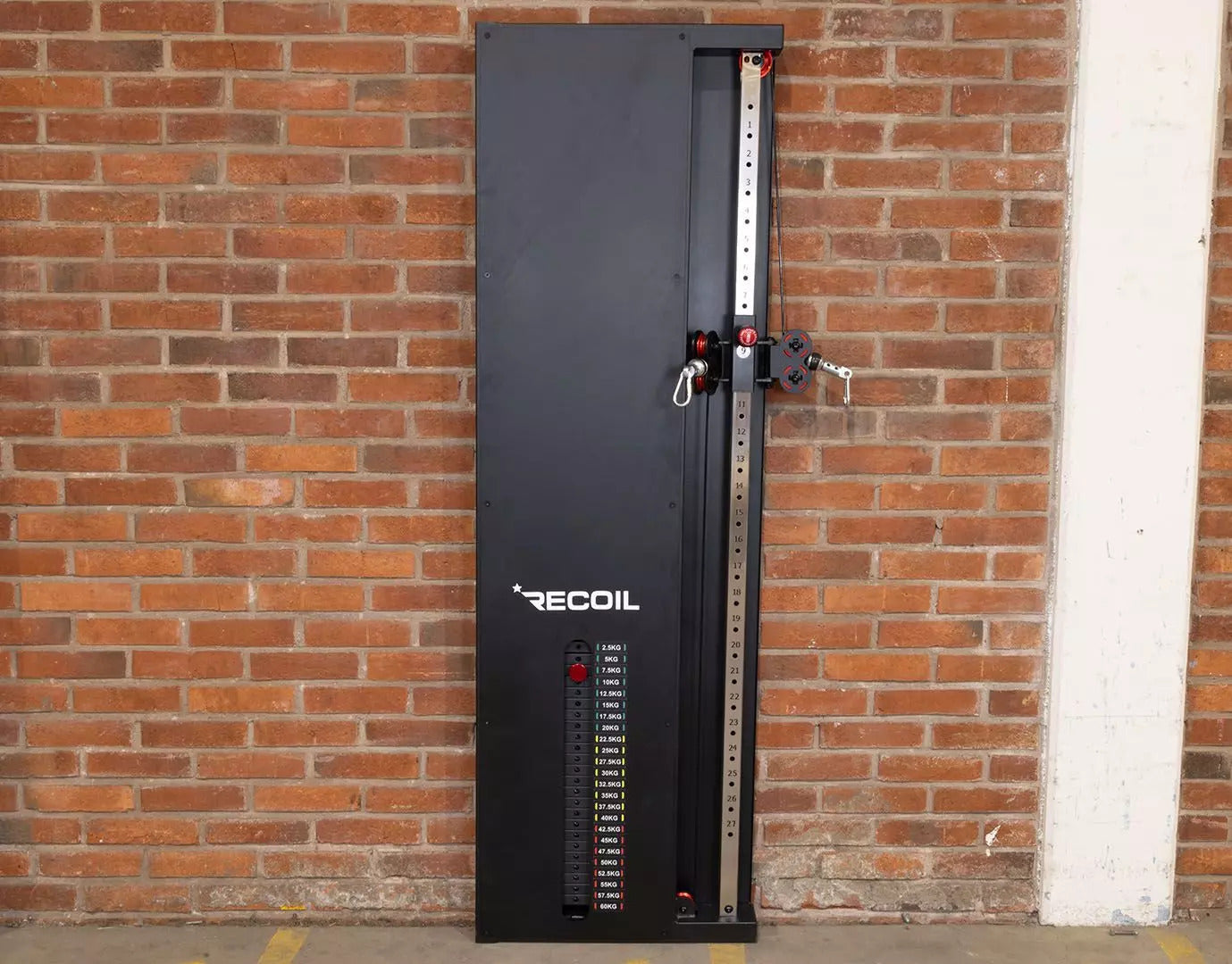 Kompakti, tyylikäs ja tehokas – tämä Recoilin seinään kiinnitettävä taljalaite on täydellinen ratkaisu, kun haluat maksimoida harjoittelumahdollisuudet pienessä tilassa ilman kompromisseja laadussa tai liikeradoissa.