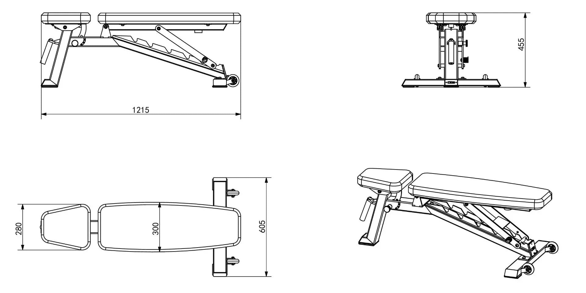 Tukeva teräsrunko takaa vakaan alustan kovempaankin harjoitteluun. Penkin kokonaispituus on 123 cm ja takajalan leveys 60 cm, mikä tekee siitä tukevan ja tilavan myös suuremmille käyttäjille ja painoille.