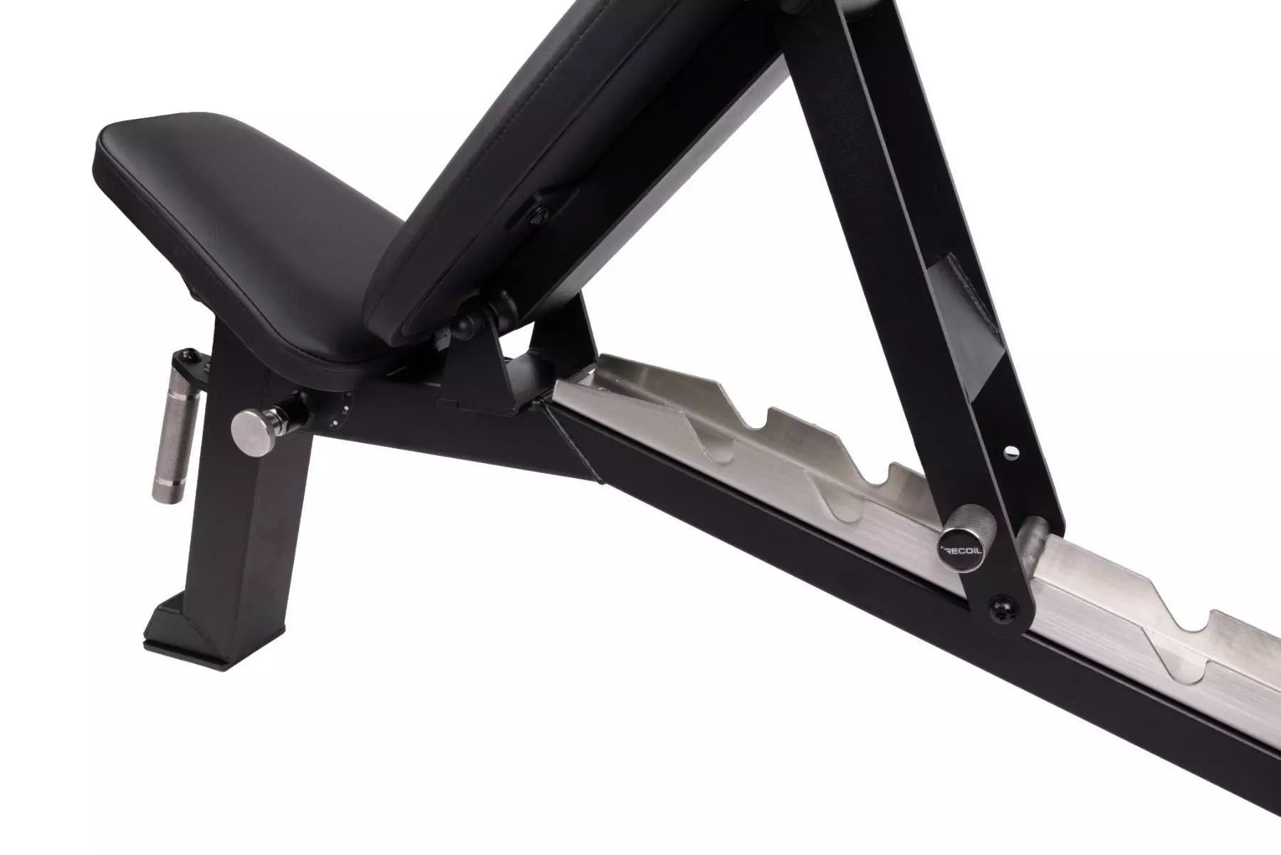 Recoil Sleek on tyylikäs ja älykkäästi muotoiltu säädettävä harjoituspenkki sinulle, joka haluat yhdistää vakauden, monipuolisuuden ja mukavuuden kotisalilla tai toiminnallisessa treeniympäristössä.
