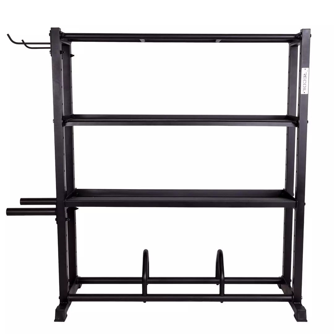 Recoil Säilytysteline on ratkaisu sinulle, joka haluat pitää kuntosalin järjestyksessä täyttämättä tilaa useilla eri telineillä. Tähän yhteen, tilaa säästävään kokonaisuuteen keskität käsipainot, kahvakuulat, levypainot, bumper-levyt, wallballit sekä muut tarvikkeet.