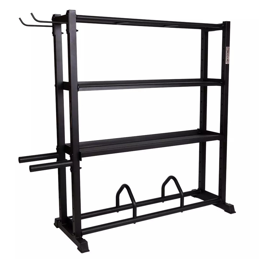 Selkeä käsipainoteline – Kolmas hylly tarjoaa avoimen ja överskådlig (selkeän) paikan käsipainoille, josta oikea paino on nopea napata treeniin.
