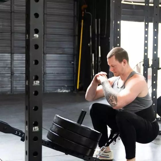 Maksimoi kotikuntosalisi tila muuttamalla Half Rack tai Power Rack -telineesi monipuoliseksi vyökyykkyasemaksi tämän innovatiivisen lisävarusteen avulla, joka on suunniteltu tarjoamaan optimaalista jalkatreeniä.
